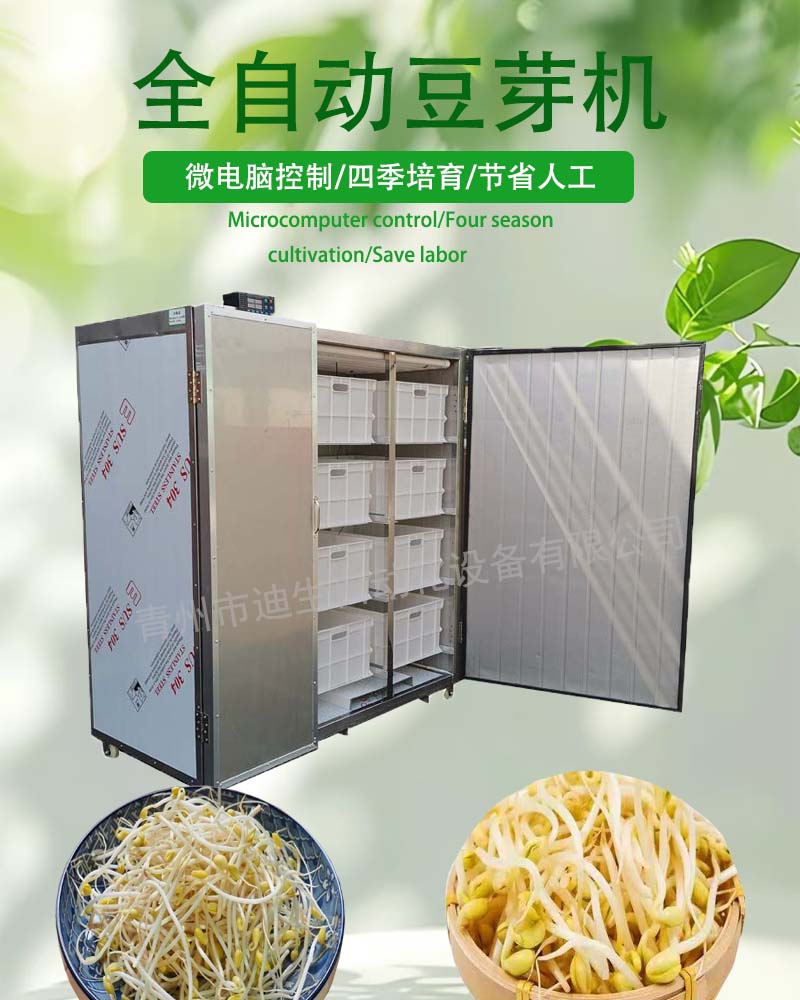 3、豆芽机具有功能全、控温准、容量大、产量高、耐腐蚀、不宜损坏、操作维修简单方便(无需专业基础)、不用专人看管等优点。