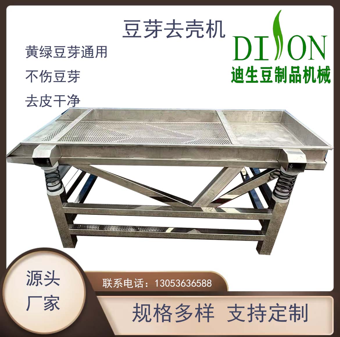 豆芽振动筛设备多为不锈钢材质,卫生环保,适用于多种豆芽。具有操作简单、噪音小、筛分效率高、换网容易等特点。有适合家庭的小型号,也有大厂家用的大型号。相比传统分离方式,无需用水,降低豆芽含水量、延长存放期,提高生产效率,降低劳动强度和成本。